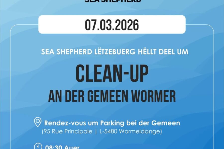 On Saturday, March 7, 2026, natur&ëmwelt Wormer is organizing a big clean-up. Sea Shepherd Luxembourg will also be picking up ...