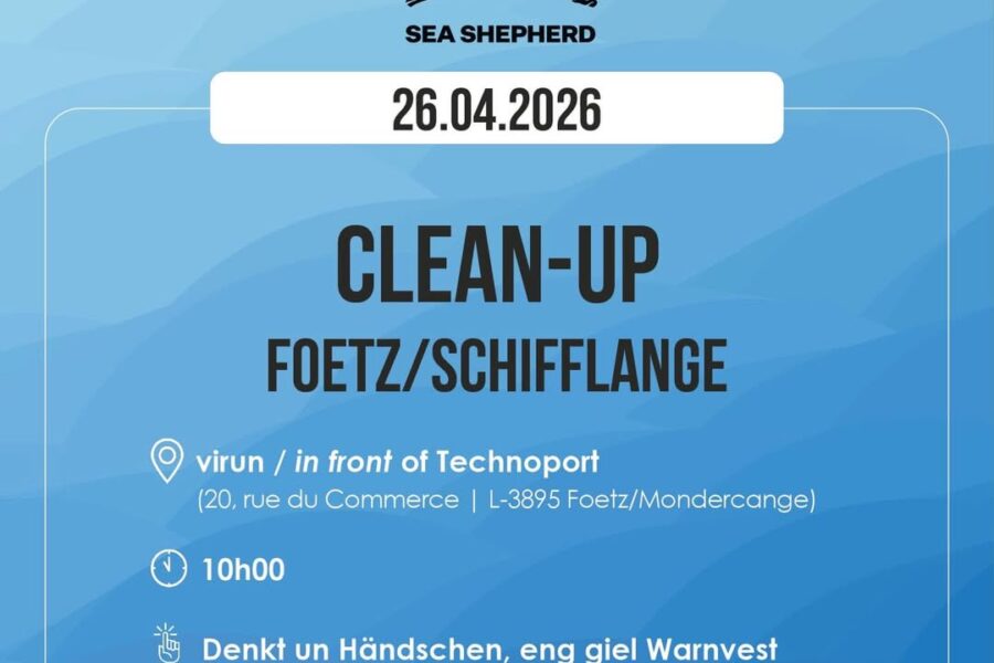 🇱🇺🇱🇺🇱🇺🇱🇺 E Sonndeg, den 26. Abrëll 2026 organiséiert Sea Shepherd Luxembourg e Clean-Up zu Feitz. Geplangt ass d’Natur groussflächeg laanscht ...
